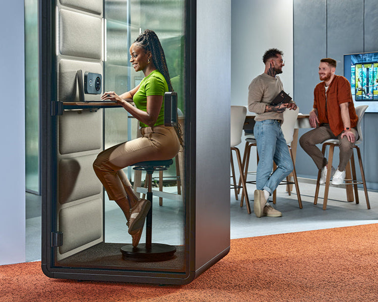 Nos cabines individuelles offrent confort, intimité et une excellente isolation phonique parfaites pour travailler en toute tranquillité, même en environnement ouvert.