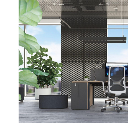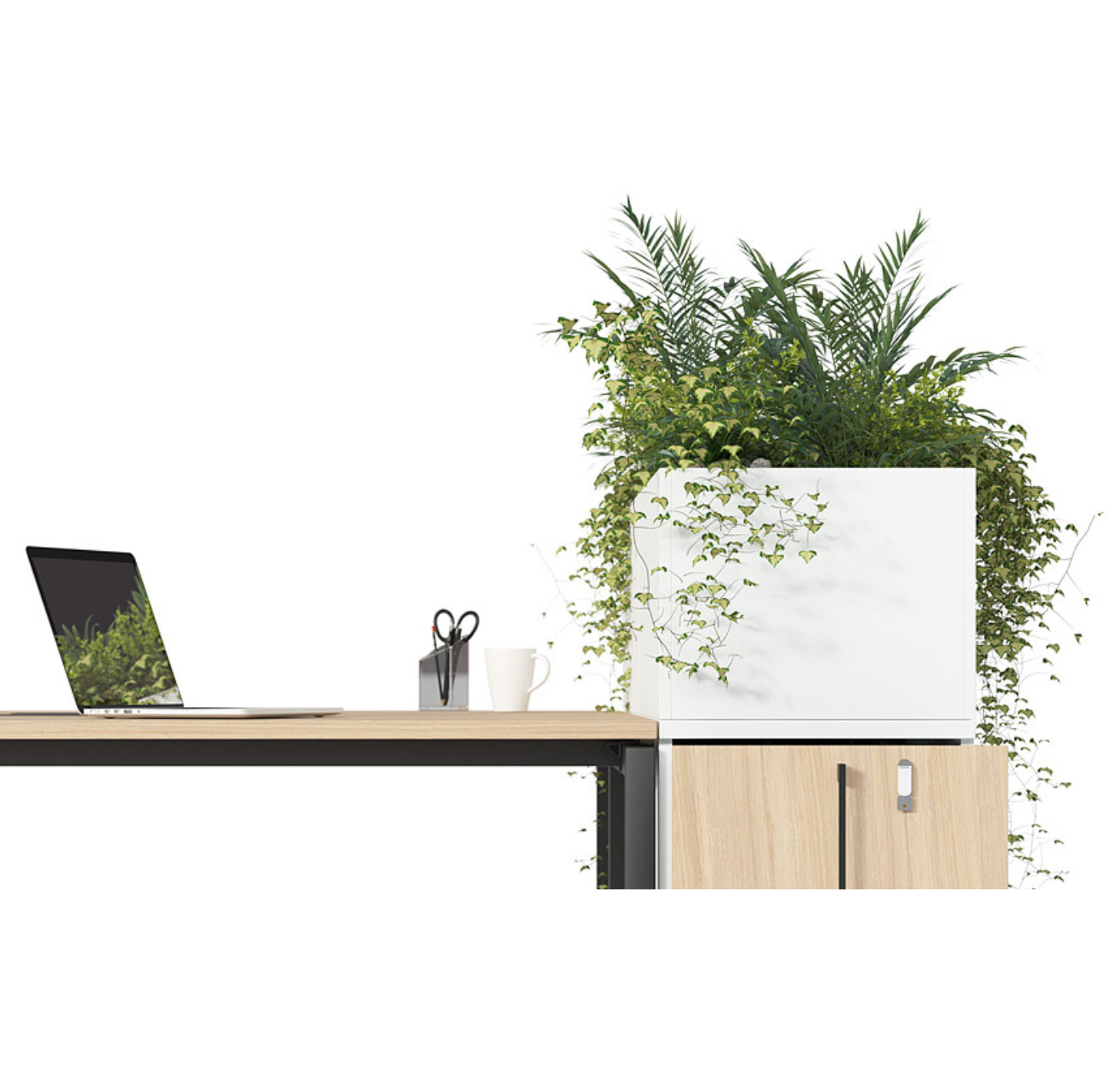 Mélangez et associez différentes couvertures de mélamine ou utilisez une jardinière pour transformer les caissons tower BOXI en îlots verts dotés d’une végétation luxuriante, ce qui sera un excellent moyen pour les employés de se reposer les yeux pendant une pause.
