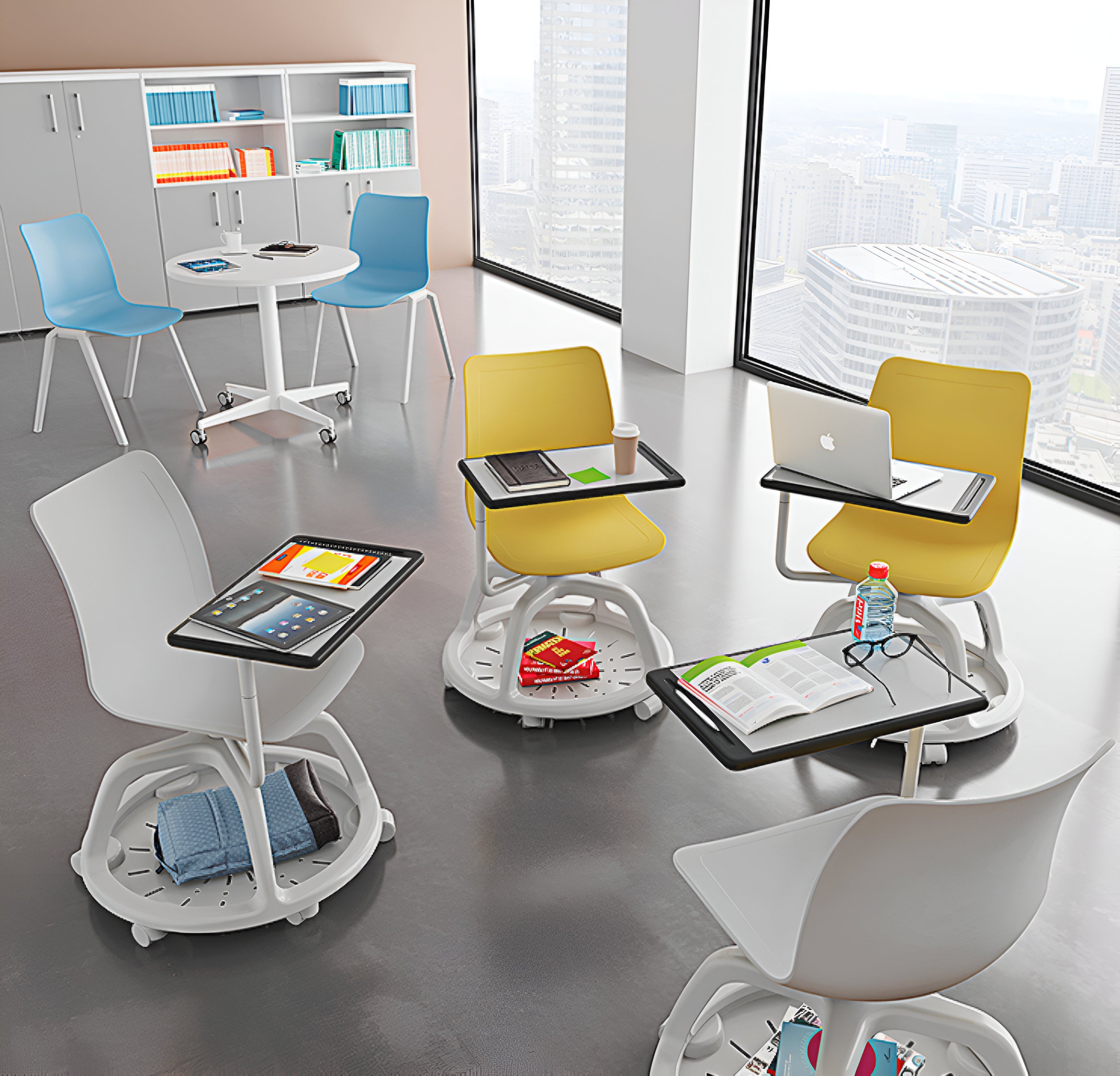 Découvrez notre modèle mobile révolutionnaire, conçu pour répondre aux nouveaux modes d'enseignement, d'apprentissage et de formation. Idéal pour les environnements éducatifs modernes et les espaces de formation dynamique, ce modèle est équipé d'un panier repose-sacs sur roulettes, offrant une mobilité et une praticité sans précédent.
