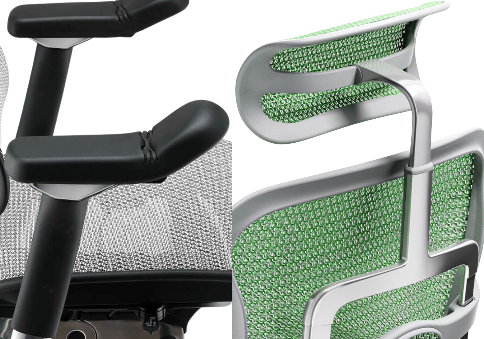- Accoudoirs 5D : ajustables en hauteur, largeur, profondeur, angle et inclinaison pour un positionnement personnalisé
