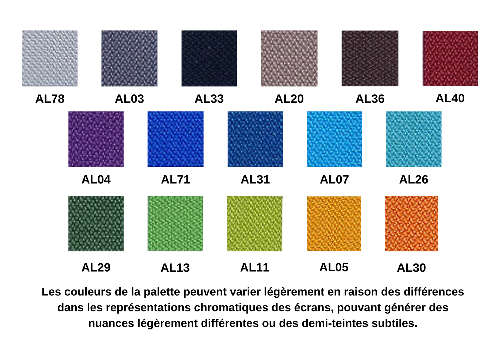Notre palette de 16 coloris en tissu 100% polyester offre non seulement une esthétique variée et attrayante, mais également une résistance à la lumière. Votre siège reste beau et fonctionnel pendant les années à venir.